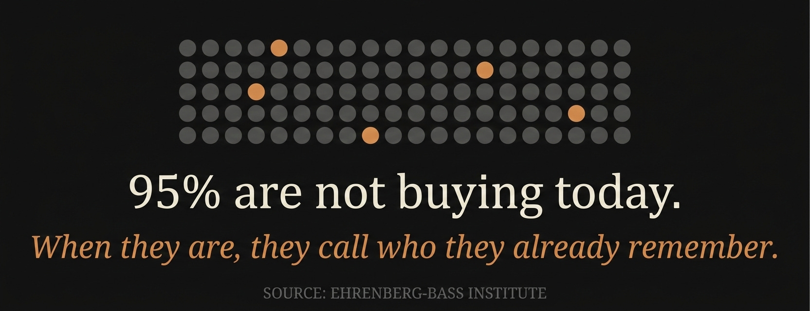 Most marketers know this but rarely act on it: according to the Ehrenberg-Bass Institute, roughly 95% of your buyers are not in-market right now. They are not clicking your ads, downloading your eBooks, or requesting demos. They are going about their day.